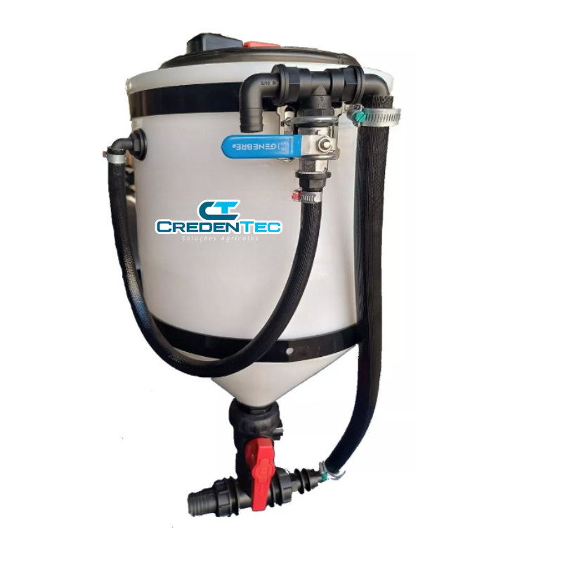 Design Inteligente: Compacto e fácil de manusear, pode ser acoplado diretamente ao pulverizador, simplificando o processo de transferência da calda.